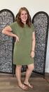 Slip into our Emilia Dress in Army and feel comfy in the ribbed fabric and convenient with a pocket (bye bye purse!).