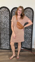 Indulge in this "nutty" ribbed dress, featuring pockets (perfect for stashing snacks) and a flattering fit. The Emilia Dress in Peanut Butter is playful yet practical, making it the perfect addition to any wardrobe.