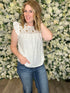 The Kerris Top brings a fresh, playful vibe with its delicate floral embroidery and charming ruffle sleeves. Perfect for adding a touch of whimsy to your everyday look, this top pairs effortlessly with your favorite jeans or skirts for a fun, flirty style.