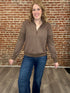 Cozy up in the Leah French Terry half-zip sweatshirt, styled in a rich mocha shade that's as warm as your favorite cup of coffee. Its soft French terry fabric offers just the right amount of snugness for any casual adventure, while the half-zip lets you play with your look and comfort. Perfect for layering or lounging, this sweatshirt brings easygoing charm to your everyday wardrobe.