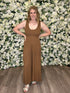 Get cozy in this ribbed chocolate romper. Its soft material will keep you warm and comfortable all day (and night) long. Perfect for lounging or a night out with friends! It's a sweet treat for your wardrobe!