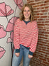 Make a bold statement with the Andi Top, featuring playful red and white stripes accented by eye-catching blue details. Its oversized fit adds a relaxed, effortlessly cool vibe perfect for sunny days and casual outings. Elevate your wardrobe with this fun and fresh piece!
